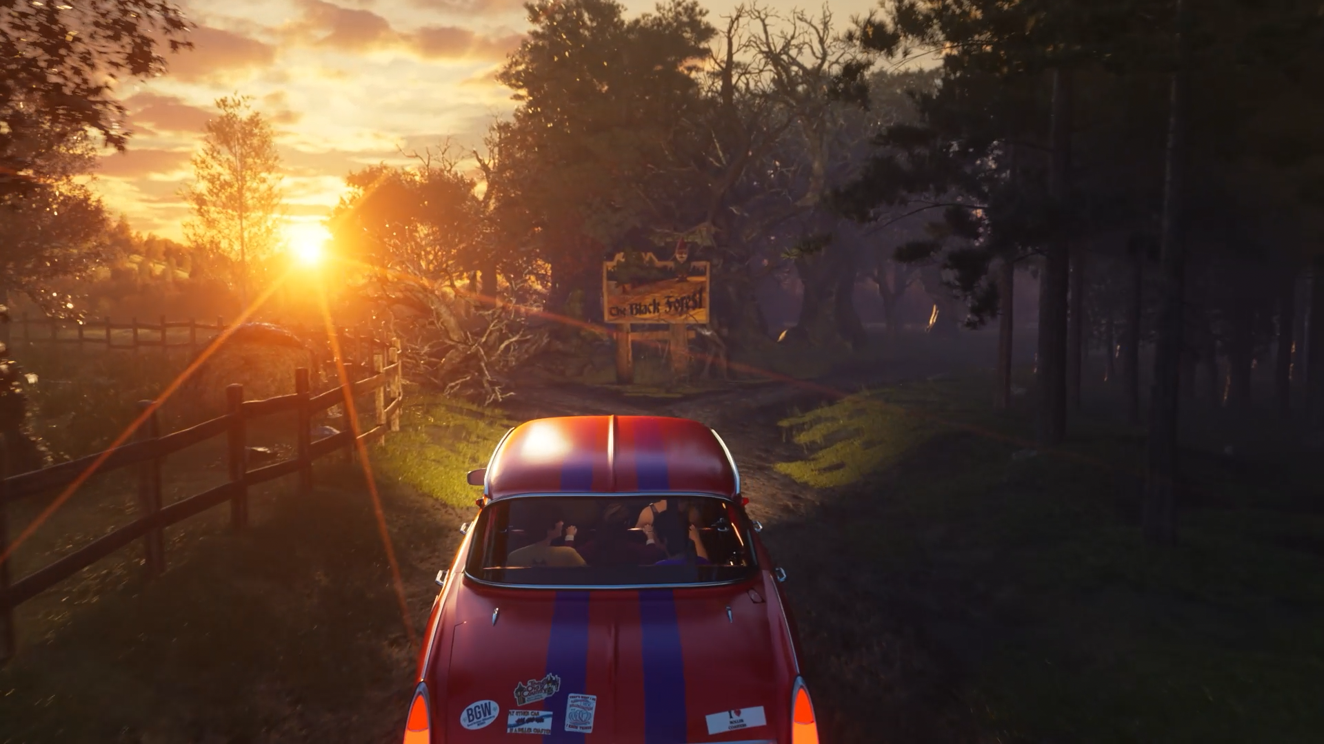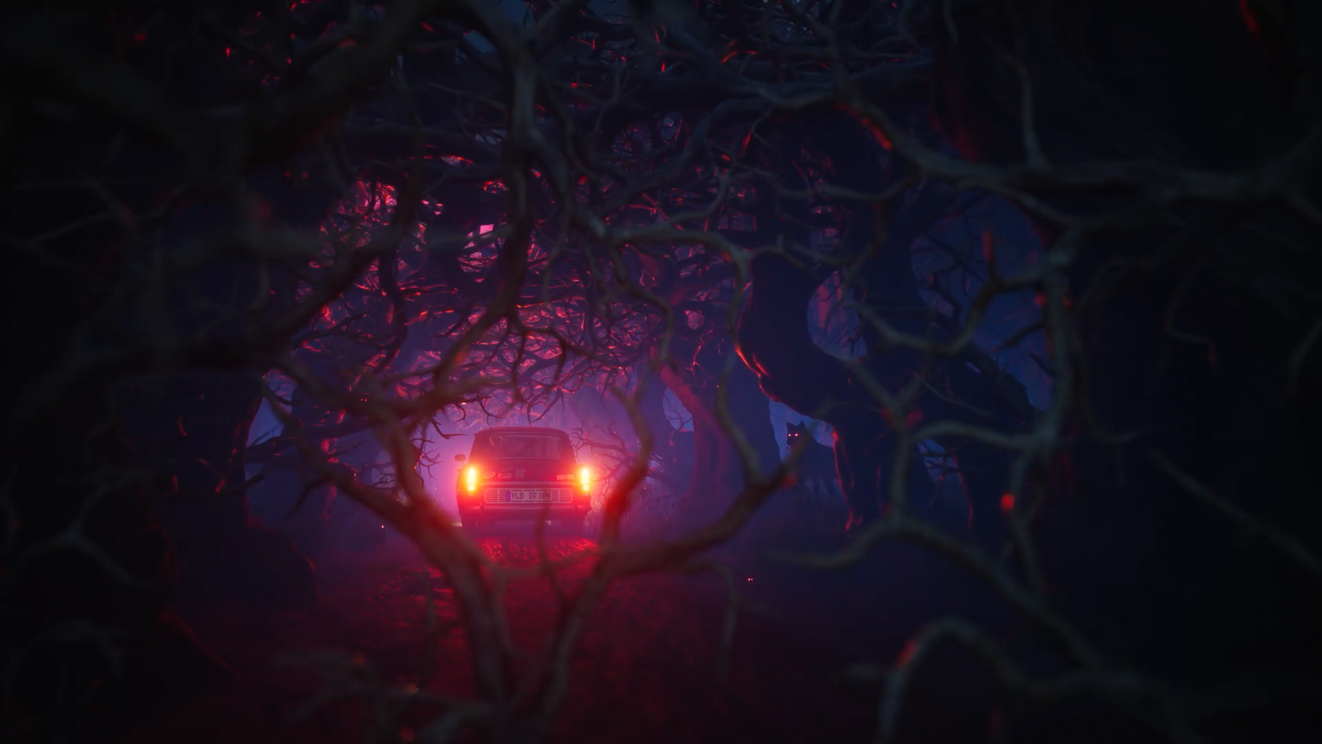 The sequence was animated in Blender 4.4, with environment motion, vehicle animation, and timing carefully choreographed to support the narrative beats. Character animation was enhanced using Unreal Engine facial motion capture, ensuring believable performances in the opening shots. Lighting was used as a storytelling device, including a timed lightning reveal to introduce the Verbolten sign, before the environment closes in around the car.
